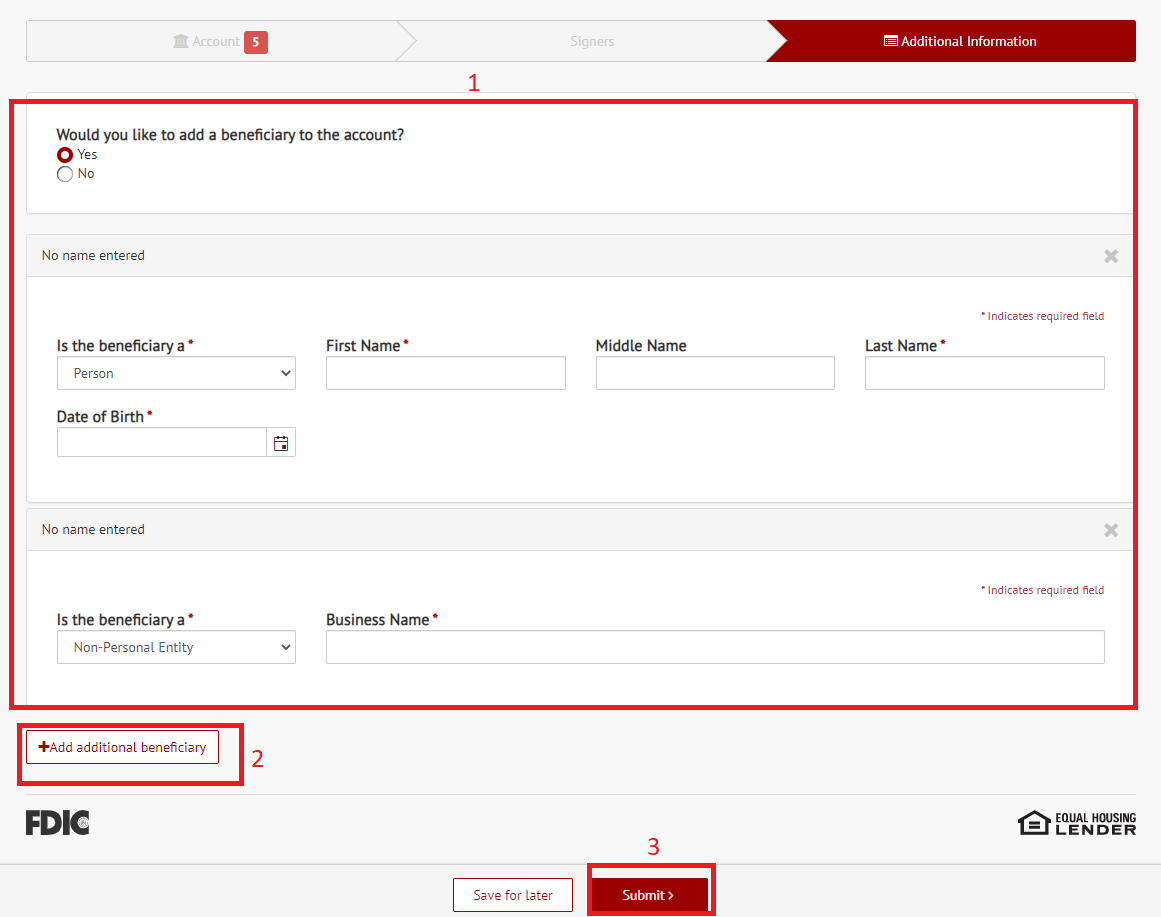 - When ready, click the submit button to transmit the documents to the financial institution.