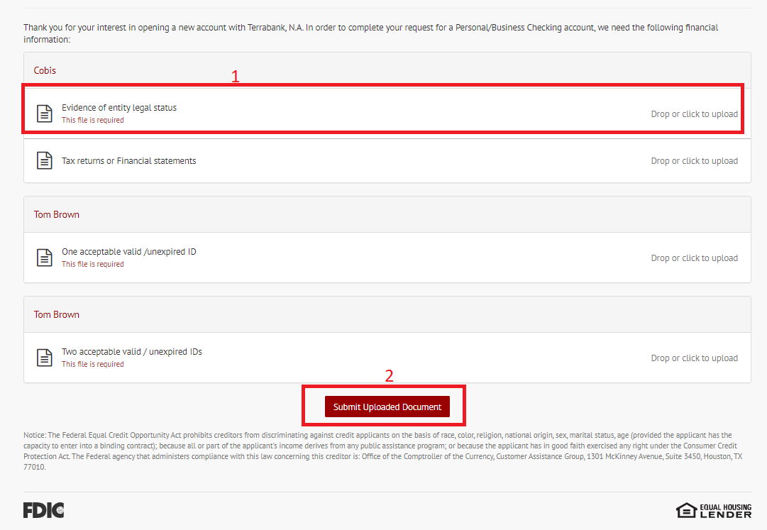 2. When ready, click the Submit button to transmit the application and your documents to a financial institution officer