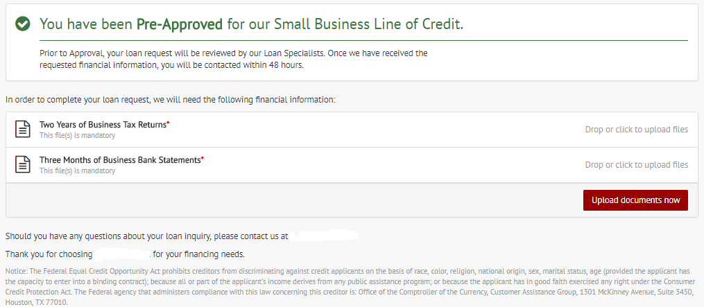 You may receive a notification indicating that there is a requirement to upload documents. Information for upload includes documentation both for the business as well as the owner(s).
